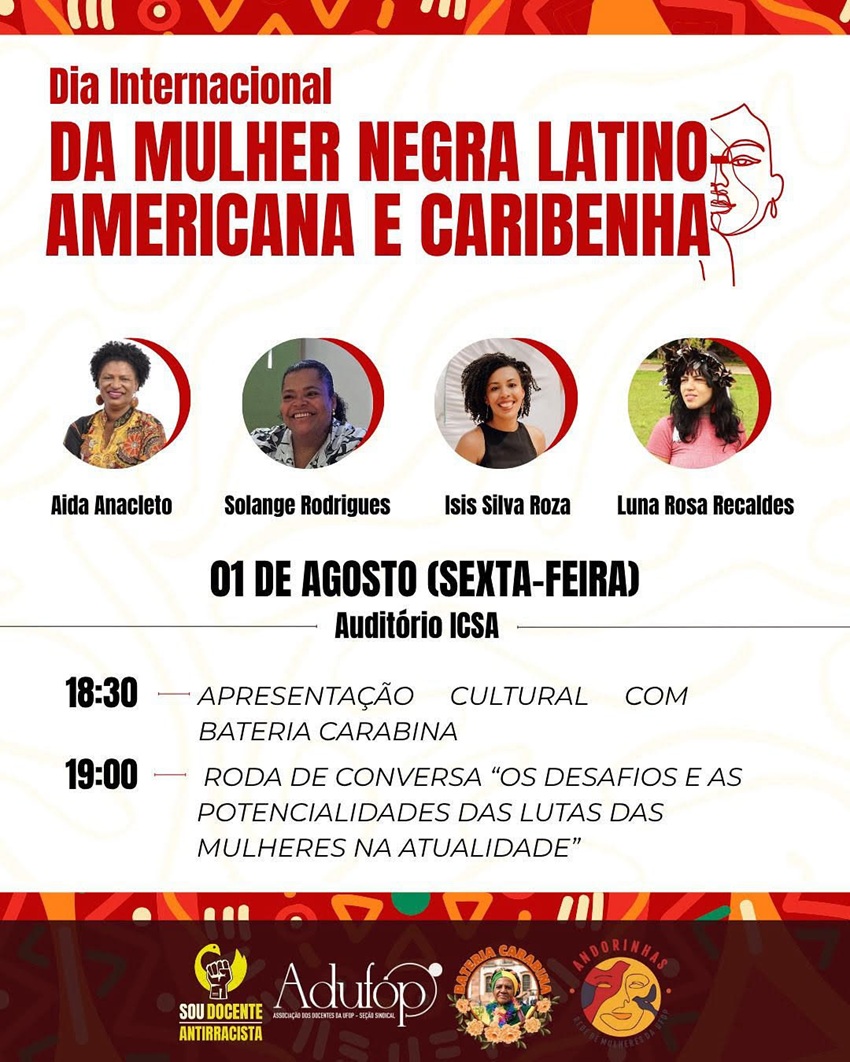 Em celebração à data, o evento visa refletir a cultura e resistência dessas mulheres. O evento vai contar com a apresentação cultural da Bateria Carabina e com a roda de conversa “Os desafios e as potencialidades das lutas das mulheres na atualidade”, reunindo mulheres de diferentes trajetórias para compartilharem experiências e reflexões sobre os caminhos de resistência das mulheres negras, indígenas, latino-americana e caribenhas.