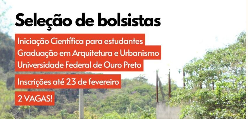 O grupo de pesquisa Conflito em Territórios Atingidos (Conterra), do Departamento de Arquitetura e Urbanismo, seleciona bolsistas para os projetos "Mapeamento de deslocamentos forçados e reassentamentos involuntários no contexto mineração no Brasil" e "Cartografia crítica dos avanços da mineração em Mariana/MG e Ouro Preto/MG".