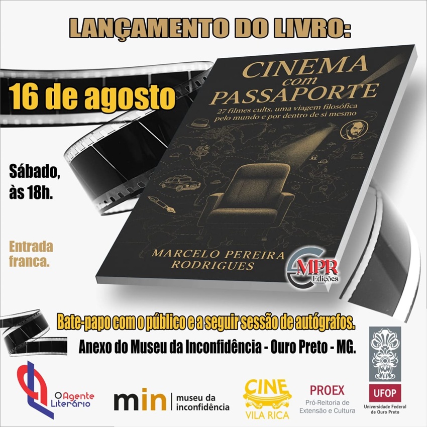 Com apoio da Pró-reitoria de Extensão e Cultura (Proex) da UFOP, será lançado o livro "Cinema Com Passaporte", do escritor e filósofo Marcelo Pereira Rodrigues. O evento acontece em 16 de agosto, às 18h, no anexo do Museu da Inconfidência. Após o lançamento, haverá sessão de autógrafos e bate-papo com o público.