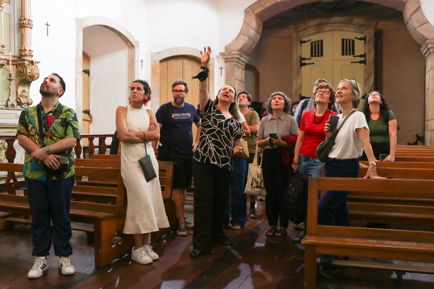Datada de meados de 1750, a estrutura da igreja é demarcada pela estética barroca, tendo como principais artistas Aleijadinho e Mestre Ataíde. Durante a visita, Guiomar destacou a importância dos dois artistas e as técnicas usadas para traduzir as crenças do catolicismo por meio da arte.