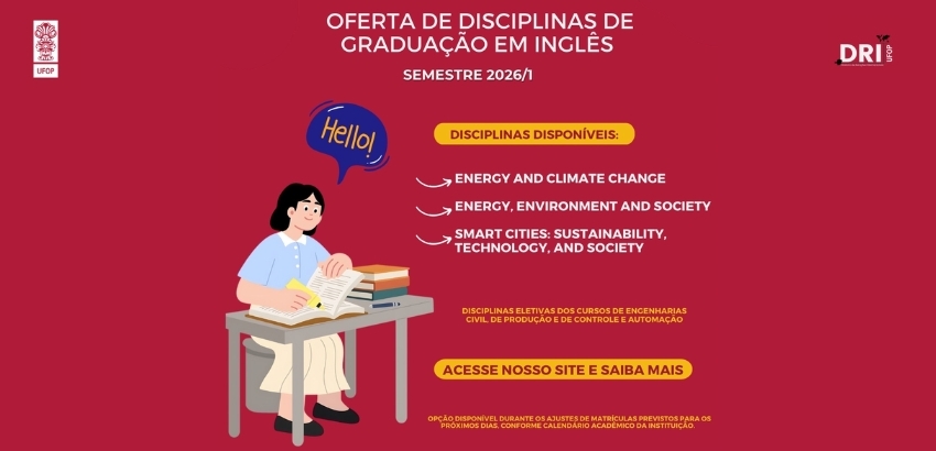 A Universidade Federal de Ouro Preto (UFOP) vai oferecer, no primeiro semestre letivo de 2026, três disciplinas eletivas ministradas em inglês para estudantes de graduação. A iniciativa é voltada para alunos dos cursos de Engenharia de Produção (Ouro Preto), Engenharia de Controle e Automação e Engenharia Civil.