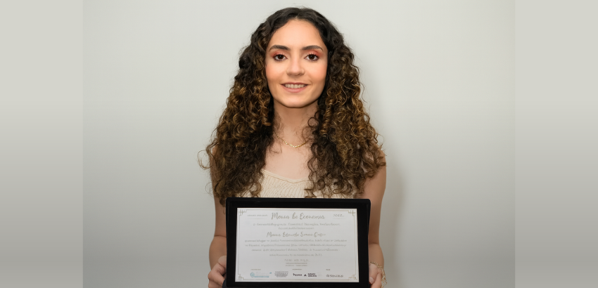 A ex-aluna do curso de Ciências Econômicas da UFOP Maria Eduarda Souza Costa conquistou o primeiro lugar no 37º Prêmio Minas de Economia. O trabalho premiado é parte do TCC de Maria Eduarda, desenvolvido sob orientação da professora Francisca Diana Viana, do Departamento de Engenharia de Produção, e do professor Diogo Ferraz, do Departamento de Economia.