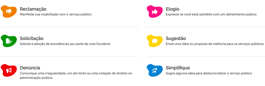 As manifestações dos tipos Simplifique, Sugestão, Elogio, Solicitação, Reclamação e Pedido de Acesso necessitam da realização de cadastro no sistema (login e senha).