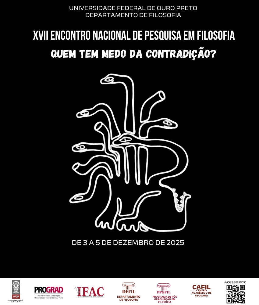 O Encontro Nacional de Pesquisa em Filosofia (ENPF) chega à sua 17ª edição entre os dias 3 e 5 de dezembro, com o tema “Quem tem medo da contradição?”. O evento tem como proponente o professor Guilherme Araújo Cardoso, do Instituto de Filosofia, Artes e Cultura (Ifac) da UFOP.